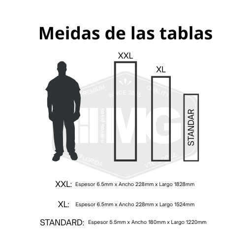 Formato: 5.5mm x 180mm x 1220mm Capa de desgaste:0,5mm (Tránsito residencial extremo) Formato de la caja: 12 tablas / 2,64Mt² Tipo de unión: Encastre click Apto para: Alto tránsito residencial / Intenso comercial Otros:Capa de EVA alta densidad de 1,5mm incorporada.